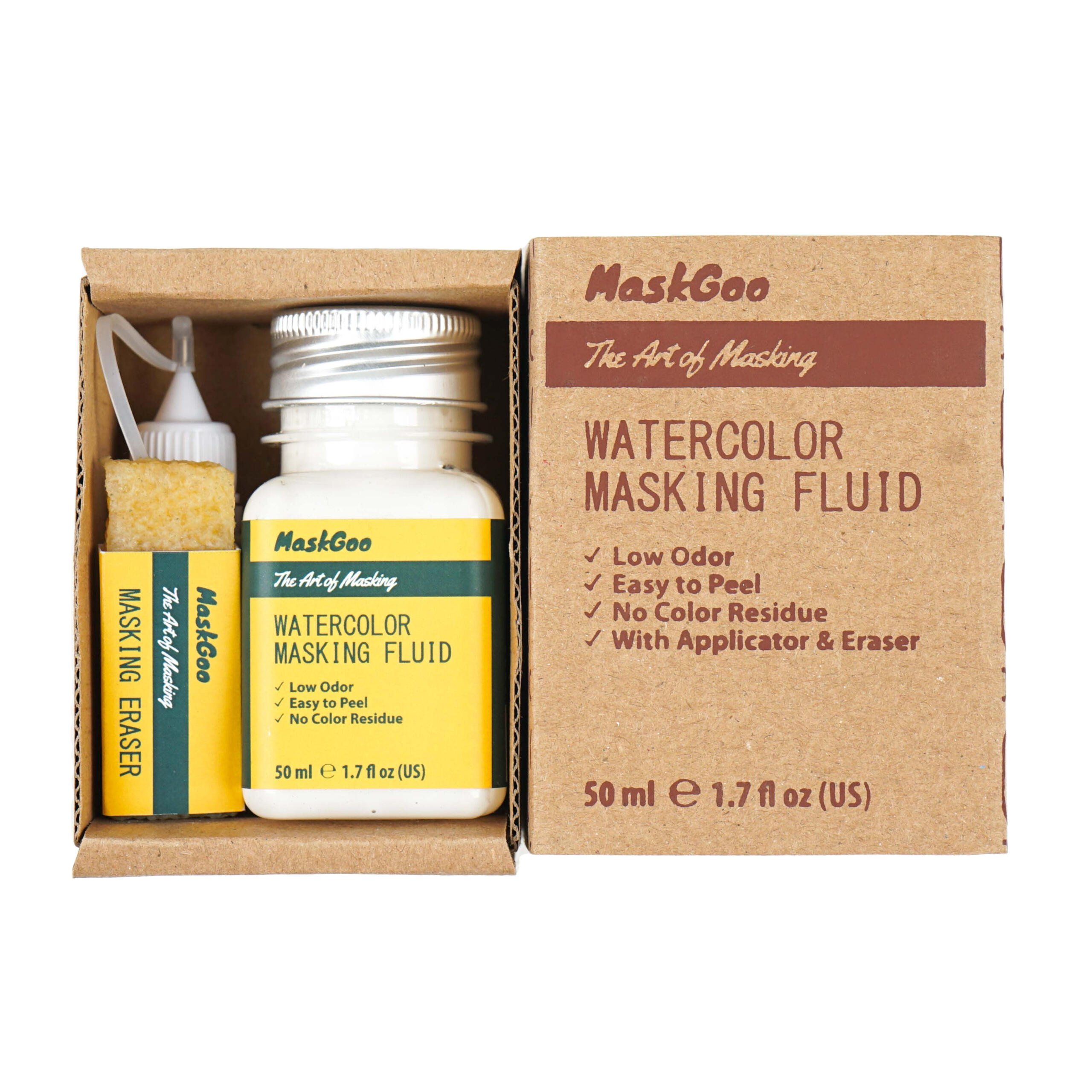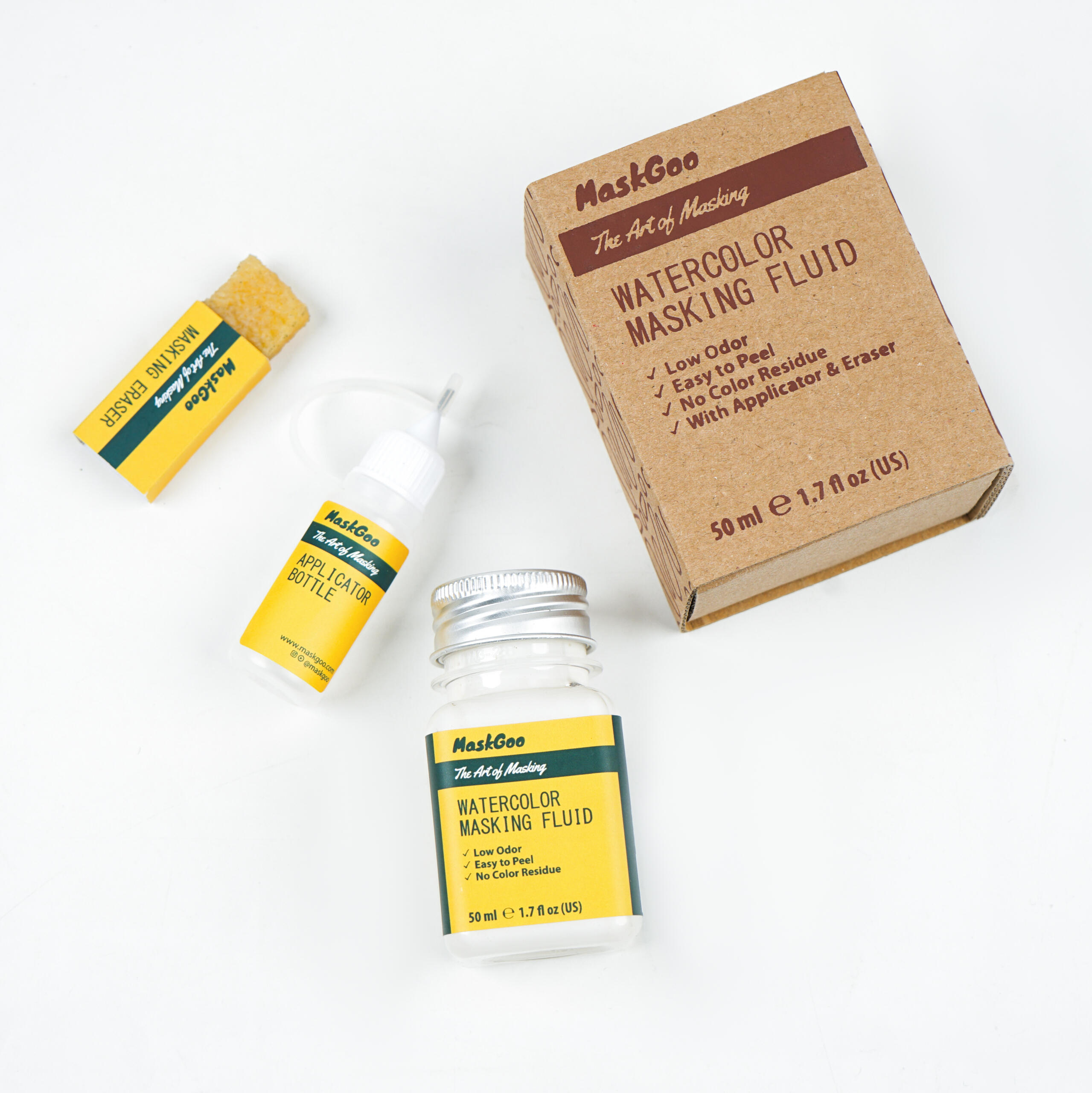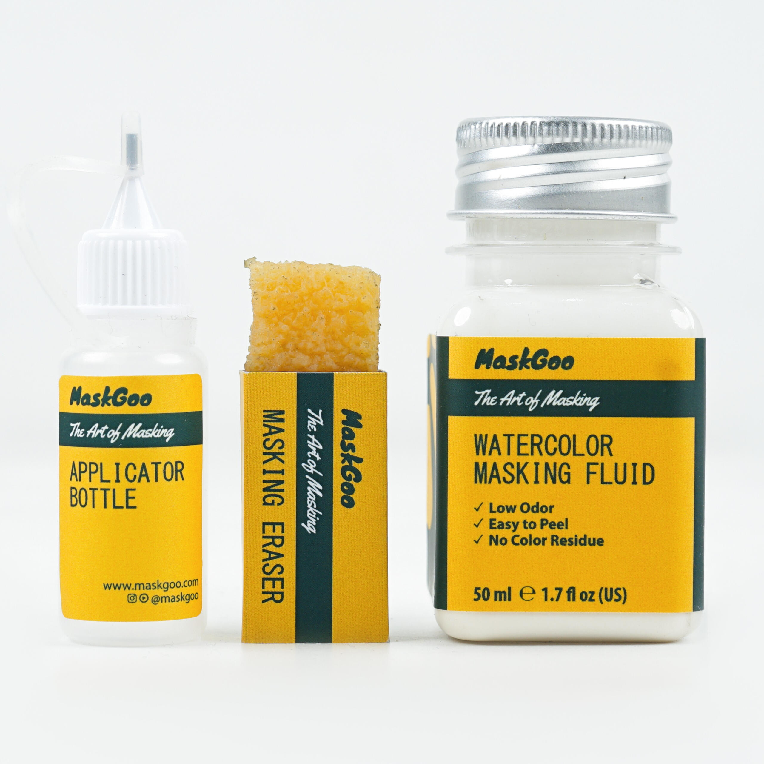 Each 50ml set includes a bonus rubber cement eraser and a refillable applicator bottle, making it a complete and practical masking kit for artists, students, and watercolor enthusiasts